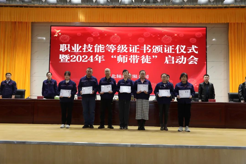 12月8日,公司舉辦職業技能等級證書頒證儀式暨2024年“師帶徒”啟動會。公司領導李昌盛、包小俊、周百嶺、郭維宏,各部門、分廠負責人,職業技能認定及“師帶徒”職工代表共100余人參加會議。自治區職業技能鑒定指導中心徐建成主任、徐學文科長及銀川市職業技能鑒定指導中心張開超主任到場指導工作。