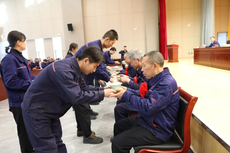 會上,獲得鍛造工和質檢員職業技能認定的21名代表上臺領取了職業技能等級證書。鍛熱分廠副廠長郭強作為職業技能認定先進單位代表,圍繞工作實際作了熱情洋溢的經驗分享。涵蓋公司重點技術技能崗位的6對師徒代表,在全場目光注視下,正式締結師徒關系。徒弟向師傅們鞠躬行禮后恭敬地奉上求技拜師茶,師傅們喝茶后給徒弟寄希望語并贈送了禮物。他們面朝主席臺,用鏗鏘有力的語氣鄭重宣誓,表明了師傅傾囊相授、徒弟孜孜求學的決心和態度,現場氣氛熱烈。