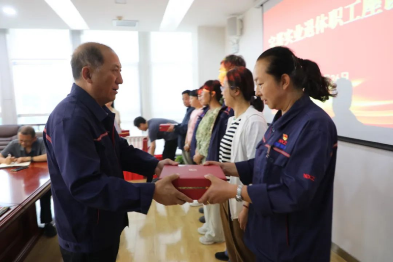 會議在溫馨融洽的氣氛中召開。公司領導簡要介紹了寶塔實業重整三年來的發展變化及未來規劃,向退休職工頒發了精心準備的紀念品,給予他們公司大家庭的溫暖和心意。三位榮退代表發表感言,深情回顧了多年來在工作中的點點滴滴以及一起奮斗拼搏的情景,誠摯表達了對公司未來發展的美好祝愿。他們的發言情真意切、發自肺腑,無不流露出對公司深沉的愛戀和深厚的情懷,令人感動、使人欽佩。